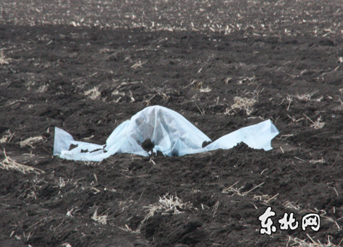 不明物体被塑料布遮盖。东北网记者 那鹏翔摄