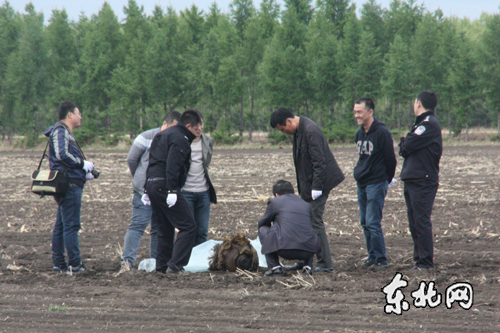 作人员对不明物展开调查。东北网记者 那鹏翔摄