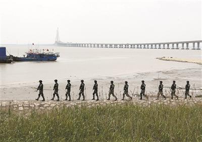 上海加强安保工作,警方在长江沿岸巡逻 供图/新华