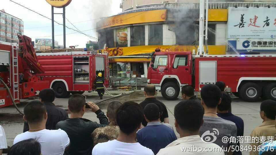 这是6月8日拍摄的爆炸起火现场(手机拍摄)。据黑龙江省安达市委宣传部消息,当日9时34分,安达市正阳四道街的一家德克士快餐店发生爆炸案件,造成2名警察受伤。目前受伤警察已被送往医院救治。新华社发