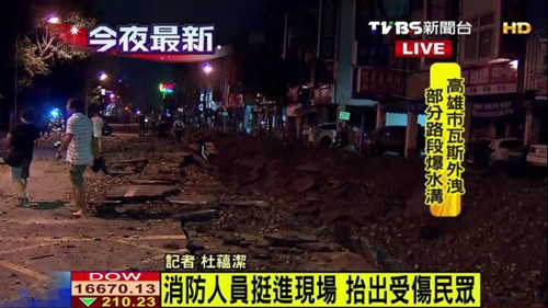 报道称,高雄市前镇区凯旋及二圣路的轻轨工地,凌晨发生瓦斯外泄,引发多处连环爆炸,爆炸声伴随火光,现场有如战争过后。这是继18年前台湾新北市板桥瓦斯气爆案以来,所发生最惨重伤亡的瓦斯气爆事件。