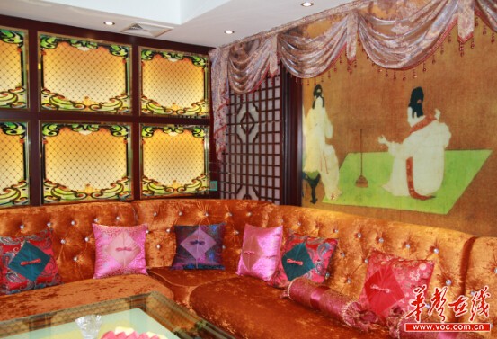 长沙神农大酒店历时八个月精心打造的“穿越宫”娱乐城ktv全新亮相,图为唐朝主题包厢背景