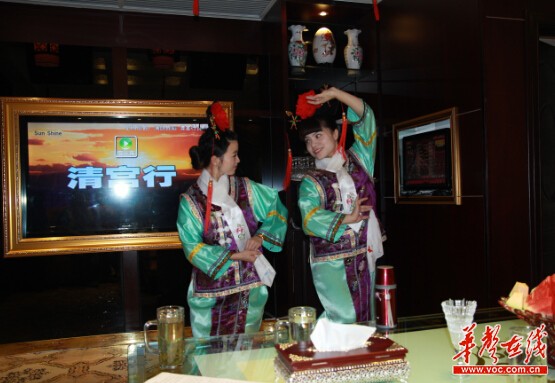 顾客穿古装唱K,服务生提供相应的朝代服务