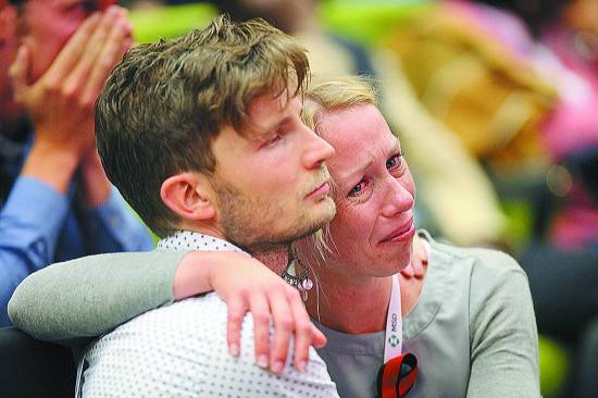 7月20日,在澳大利亚墨尔本,两名与会代表在大会开幕式上相拥而泣。当日,第20届国际艾滋病大会在澳大利亚第二大城市墨尔本开幕,一万多名与会者在开幕式上集体悼念6名在马航MH17航班坠毁事件中遇难的抗艾专家。新华社记者 徐俨俨摄