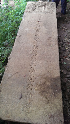 “诰封诰授建威将军江南苏松总镇王梦虎公神道”,破损的神道碑上铭刻了这20个文字。经长沙史学家陈先枢和《南方都市报》主编谭伯牛史料考证,碑中所说主人公“王梦虎公”即光绪二十年总兵王衍庆,表字梦虎。他因立有军功,受朝廷嘉奖,被立此碑。