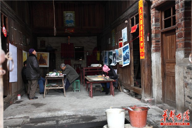 民间艺术家在中田村古民居进行版画创作。罗荣 摄