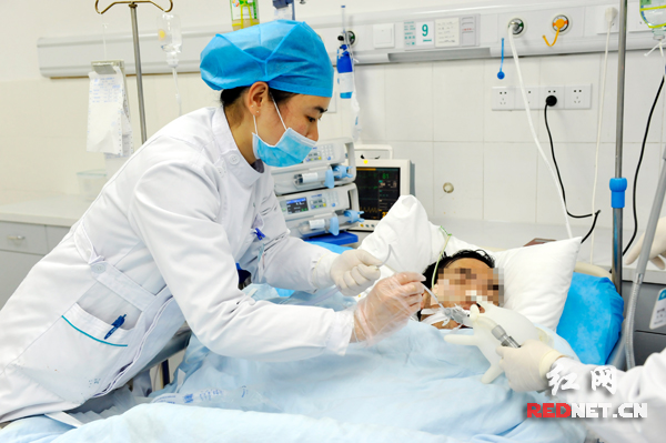 当时患者已自行扯掉了身上所有的针管和插管,血一直不停地往外冒,全身都是血渍,医务人员都不敢靠近,幸好另外的几名病人赶紧赶过来相救,及时制止了这场危机。