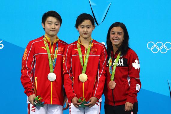 北京时间8月19日,2016年里约奥运会跳水比赛在玛丽亚-伦克水上运动中心展开第11个比赛日的争夺,在女子10米台决赛中,任茜凭借着全场完美的发挥,以总分439.25分夺冠,司雅杰在第四跳有些瑕疵,影响了整体分数,但其他几跳同样出色,以419.40分获得亚军,中国队实现了该项目的三连冠,也首次在奥运会上包揽该项目前两名,同时这也是本届中国代表团夺得的第20金;加拿大选手本菲托以389.20分摘铜。【点击观看任茜10米跳台夺冠gif】