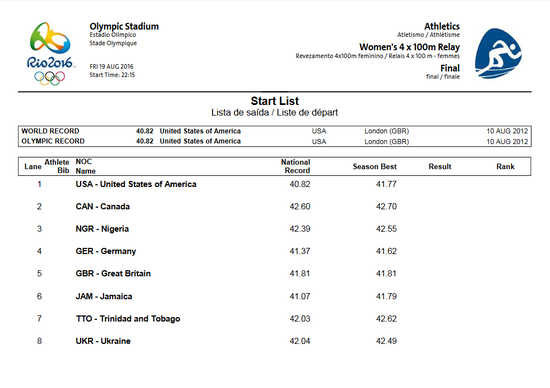 北京时间8月19日消息,里约奥运女子4x100米接力美国队重赛跑出41秒77,以预赛成绩第一,挤掉中国队晋级决赛。中国队此前以42秒70暂列预赛的第八位,遗憾地被出局。