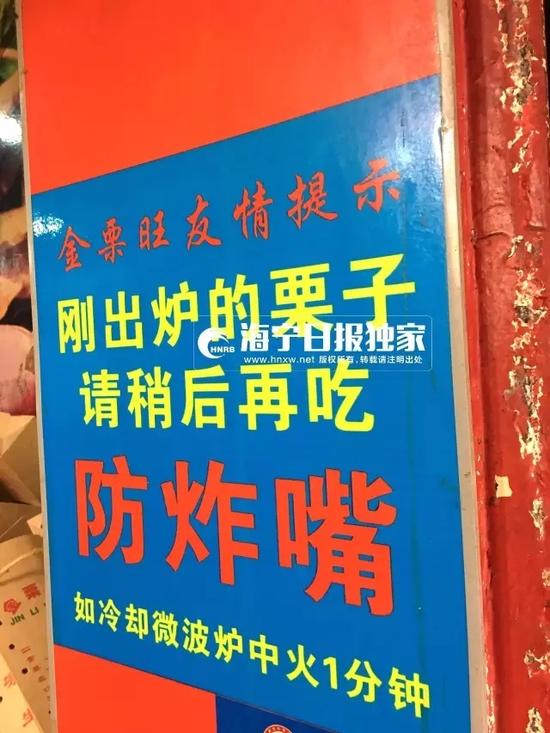 在市区干河街,一家名叫“金栗旺”糖炒栗子店店门口就贴了一张很直白的“友情提示”。