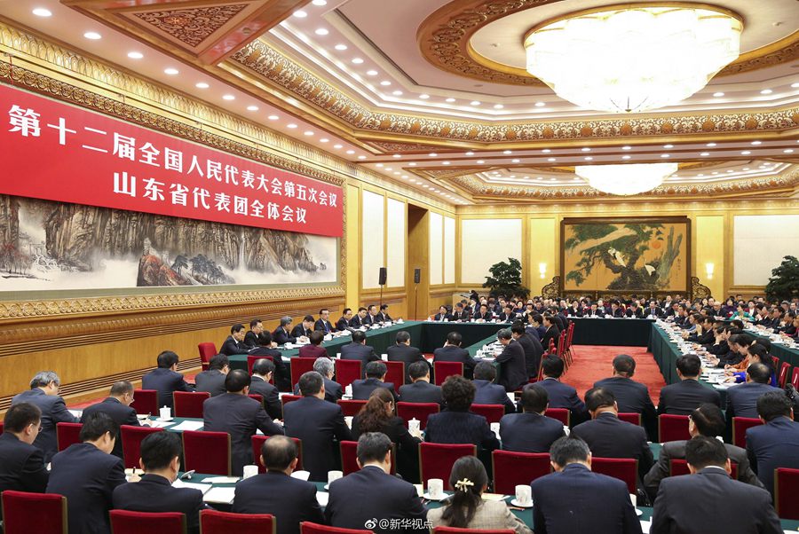 6日上午出现在人民大会堂时,李克强总理的身份是一名全国人大代表。在他所在的十二届全国人大五次会议山东代表团,李克强与全团代表一起审议政府工作报告。他说,这是我第五次来到山东代表团,作为本团团员和大家一起讨论。我以代表身份谈几点看法。(据“新华视点”微博报道)