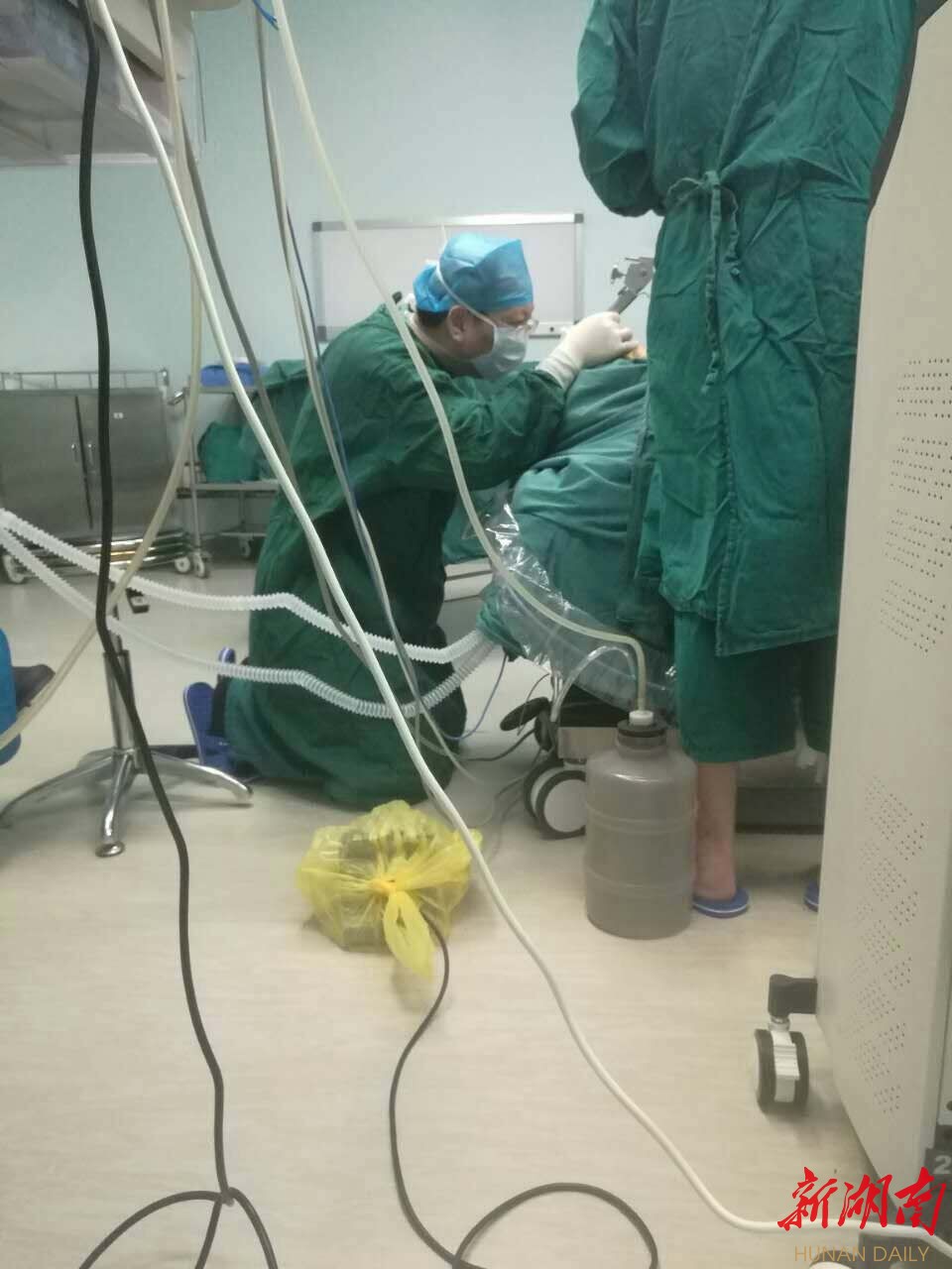 华声在线4月27日讯(记者 段涵敏 通讯员 刘笑梅 曾小利)这两天,一组医生跪地为患者做手术的照片在微信朋友圈热传。照片中,身着绿色手术衣的医生,时而跪着挺直身躯,时而跪着俯身贴地,一直在找寻着什么。记者今天从长沙市中医医院(长沙市第八医院)了解到,跪地做手术的医生是该院耳鼻喉科主任梁建伟。