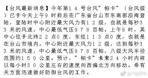 原标题:注意!“帕卡”已在台山登陆!珠海、中山、江门全市停工停市停课!这些最新信息你一定要知道!