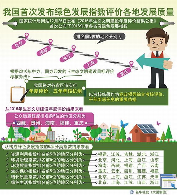 新华社北京12月26日电 题:衡量地方发展和官员政绩的新“风向标”——透视我国首次发布的绿色发展指数