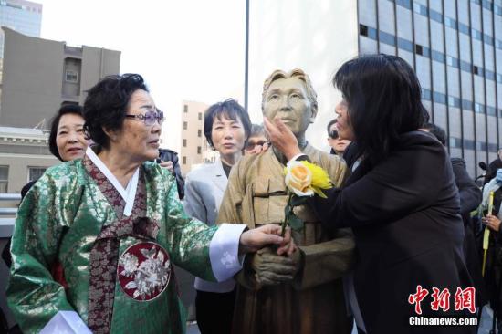 资料图:当地时间9月22日,美国旧金山市圣玛丽广场,慰安妇雕像揭幕仪式隆重举行,这也是美国主要大城市第一座慰安妇雕像。中新社记者 刘丹 摄