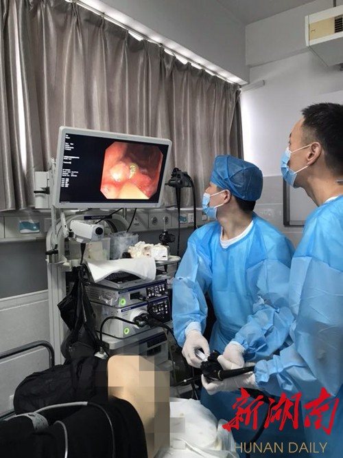 (医生将健康的粪菌提取液经肠镜缓慢注入患者肠管)