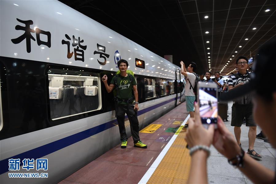 9月23日,搭乘G5711次高铁列车前往香港西九龙站的乘客在深圳北站拍照留念。新华社记者毛思倩摄
