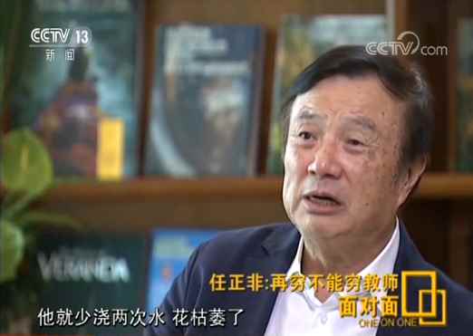 任正非:一样,我们可以讲,在日本一个小学教师,娶一个电影明星做太太,但以前是有名字的,现在我不讲这个名字了,很正常,觉得很荣耀,不觉得不荣耀。当然我们国家七十年来有巨大进步,这三十年也有巨大改善,对吧,教师的生活也有大的进步,但是我们要看到他们是我们祖国的未来,他们是国家未来。他们担负着花朵,给花朵浇水的人。我们都不给花朵浇水的人一种事业心一种使命感的话,他就少浇两次水,花枯萎了,我们不就是一个乔布斯少掉了吗?