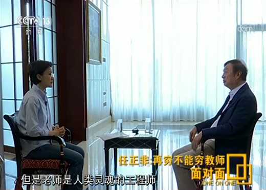 在1月17日,任正非接受《面对面》专访中,任正非呼吁,把教育做好,国家才有未来。因此,要提高老师的待遇,再穷也不能穷教师,要让优秀的人才愿意去当老师,让优秀的孩子愿意学师范,这样就可以实现“用最优秀的人去培养更优秀的人”。而四个月后的这次采访,他最想呼吁的依然是提高老师的待遇,再穷不能穷教师,让社会各界都来重视基础教育。