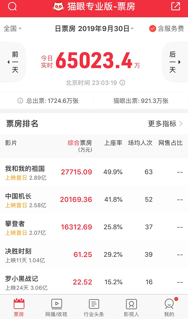 相信随着假期正式开启,新中国成立70周年一系列活动和成果展示带来的对家国民族情感共振的升温,观众对于这样又燃又好看的国庆档电影的观影热情,还有进一步提升的空间。