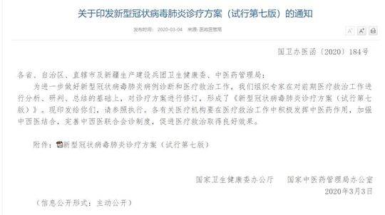 关于印发新型冠状病毒肺炎诊疗方案(试行第七版)的通知