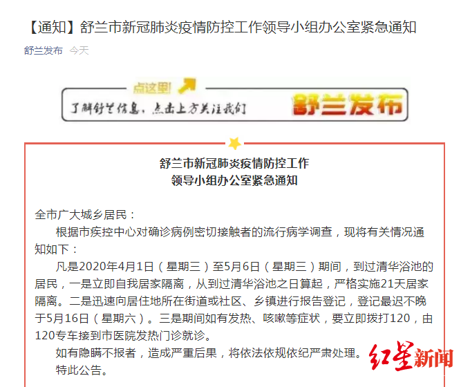 5月14日,据舒兰发布官方微信通报,吉林舒兰市新冠肺炎疫情防控工作领导小组办公室发布紧急通知。