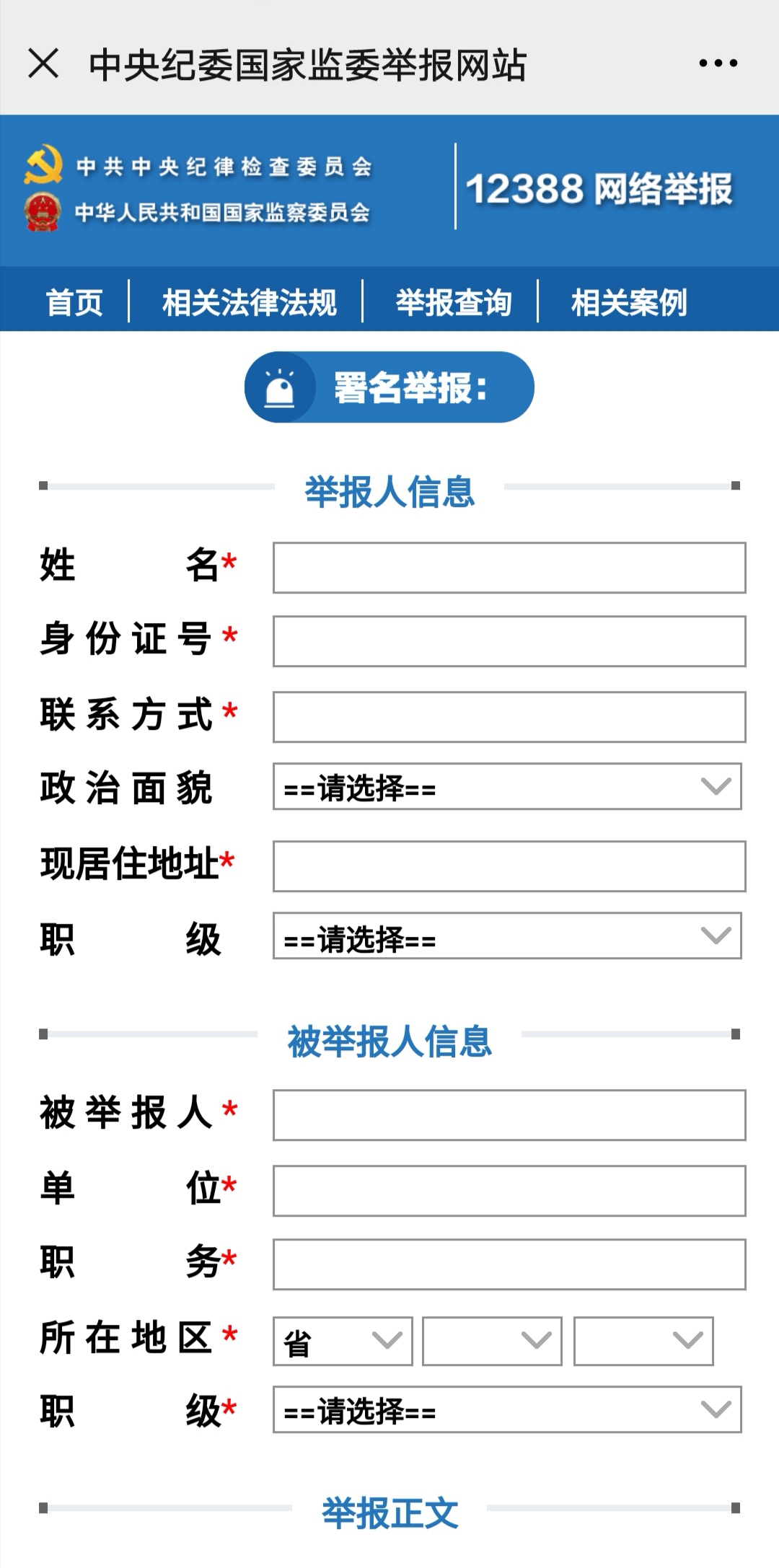 当前,中国网民通过手机接入互联网的比例超过98%。为落实《纪检监察机关处理检举控告工作规则》,进一步适应向移动端倾斜的互联网发展趋势,为网民提供更加便捷友好的网络举报渠道,经过前期建设部署,中央、省、市、县四级纪检监察机关12388举报网站手机站点全部开通上线。
