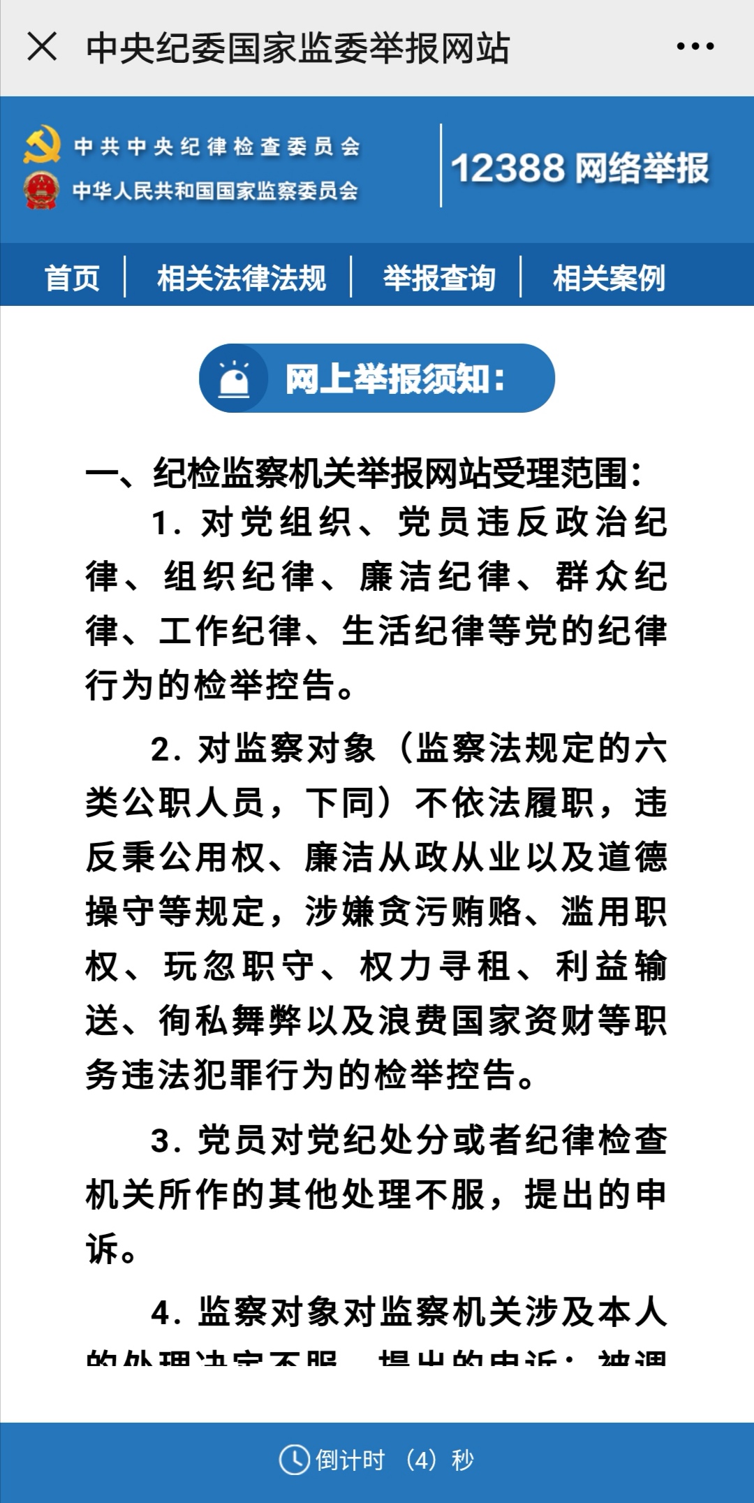 记者从中央纪委国家监委机关获悉,近日,纪检监察机关12388举报网站手机站点(http://www.12388.gov.cn)正式开通上线,范围覆盖全国3500多个县级以上纪检监察机关。