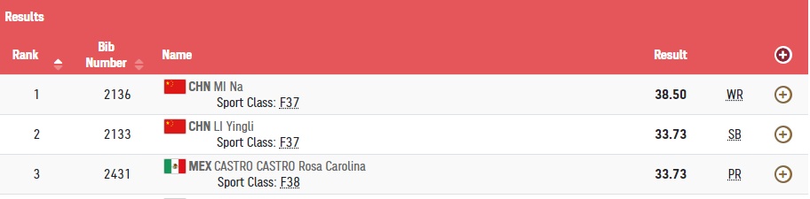 9月4日,东京残奥会女子铁饼F38级比赛中,中国选手米娜、李英粒携手出战包揽金银!