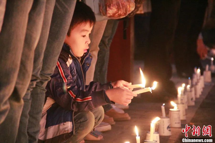 资料图:2013年04月20日08时02分,四川省雅安市芦山县发生7.0级地震。图为小男孩点燃蜡烛祈福。张一辰 摄