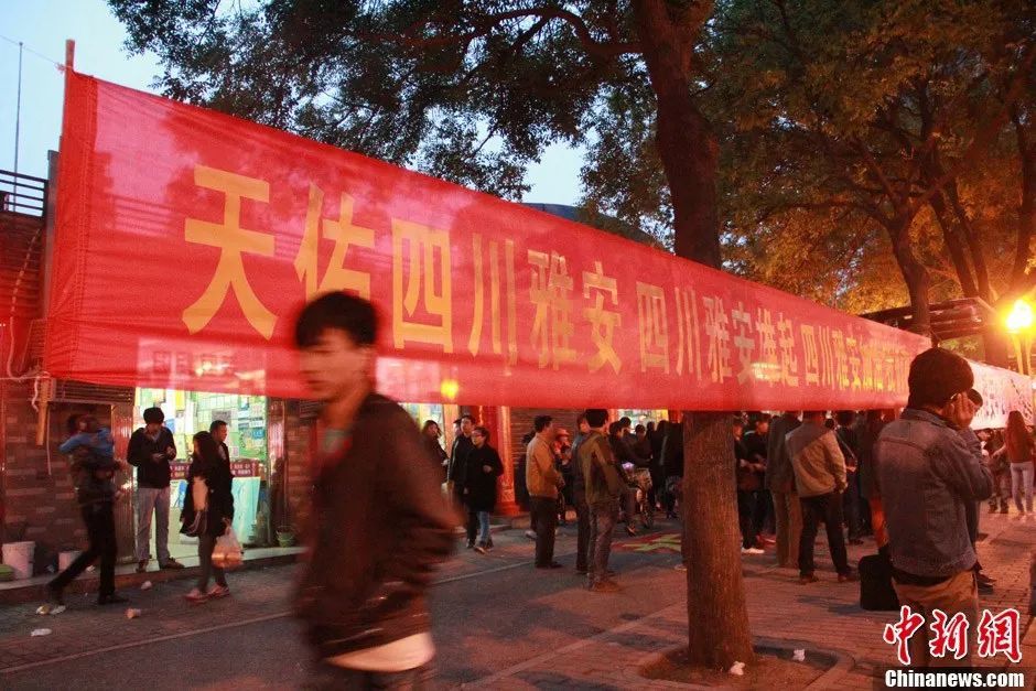 图为2013年4月20日雅安发生地震后,民众打出横幅为雅安加油 资料图:张一辰 摄