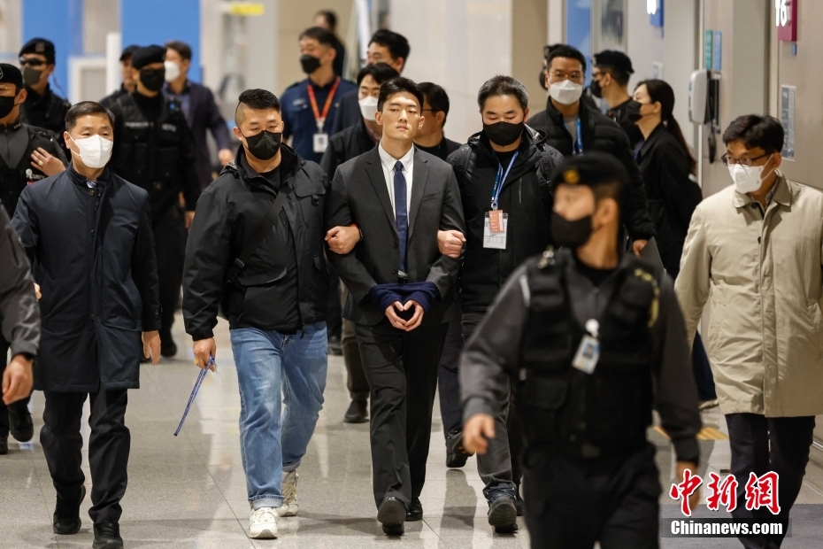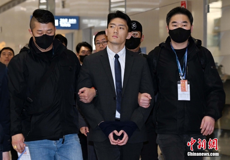 当地时间3月28日,韩国仁川,已故韩国前总统全斗焕之孙全宇元(音)在仁川国际机场入境。首尔警察厅毒品犯罪调查队进行前期取证调查后,以涉嫌吸毒的罪名在机场将其逮捕。本月稍早前,全宇元通过个人社交网站和媒体爆料全氏家族的秘密资金细节,并声称自己和几个熟人是毒犯。