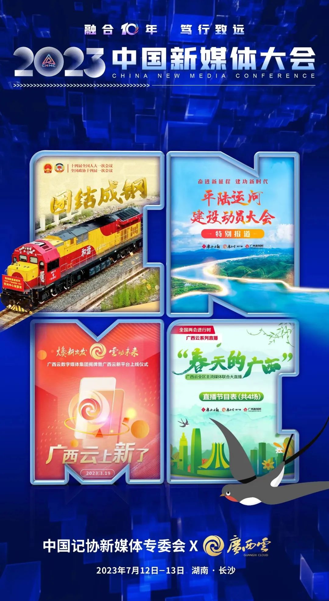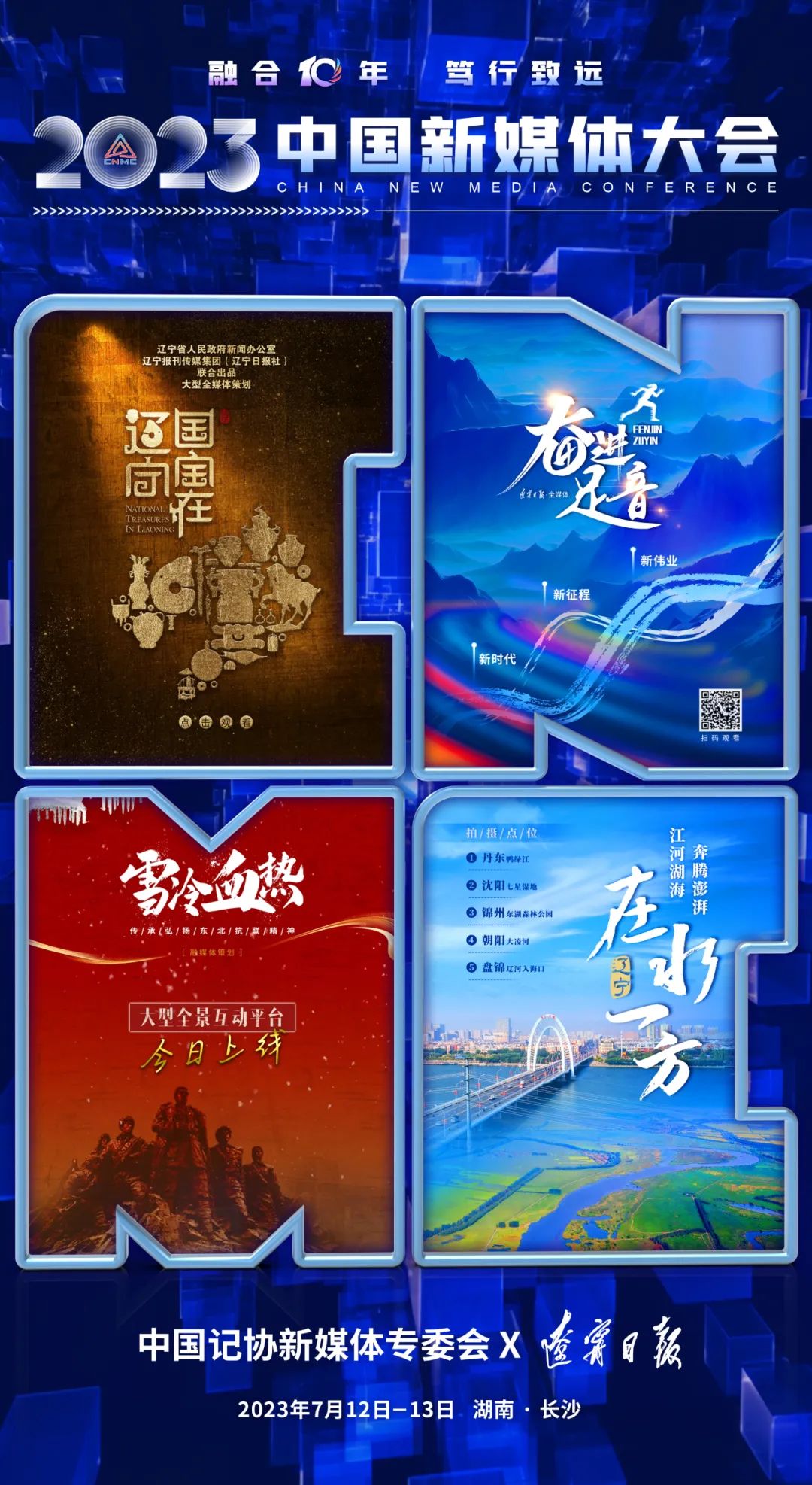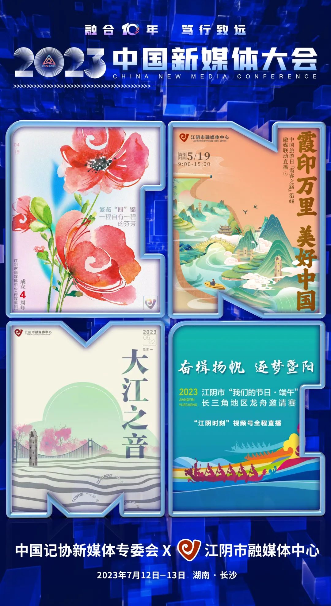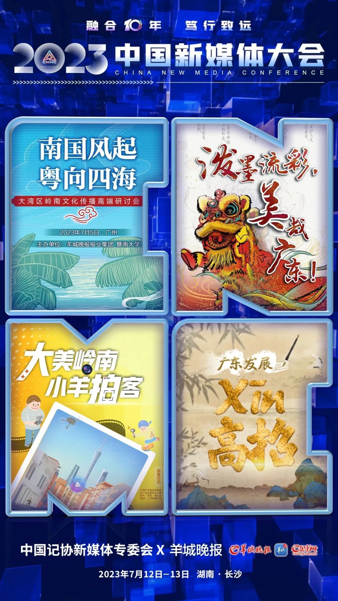 2023中国新媒体大会将于7月12日至13日在湖南长沙召开,中国记协新媒体专业委员会各成员单位纷纷推出“联名海报”为大会预热。