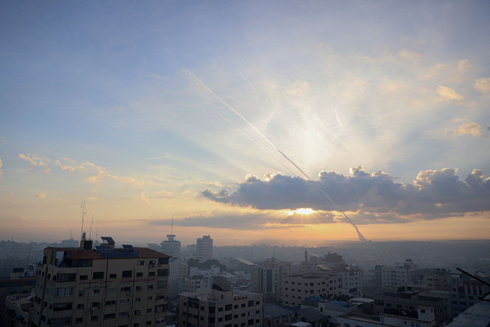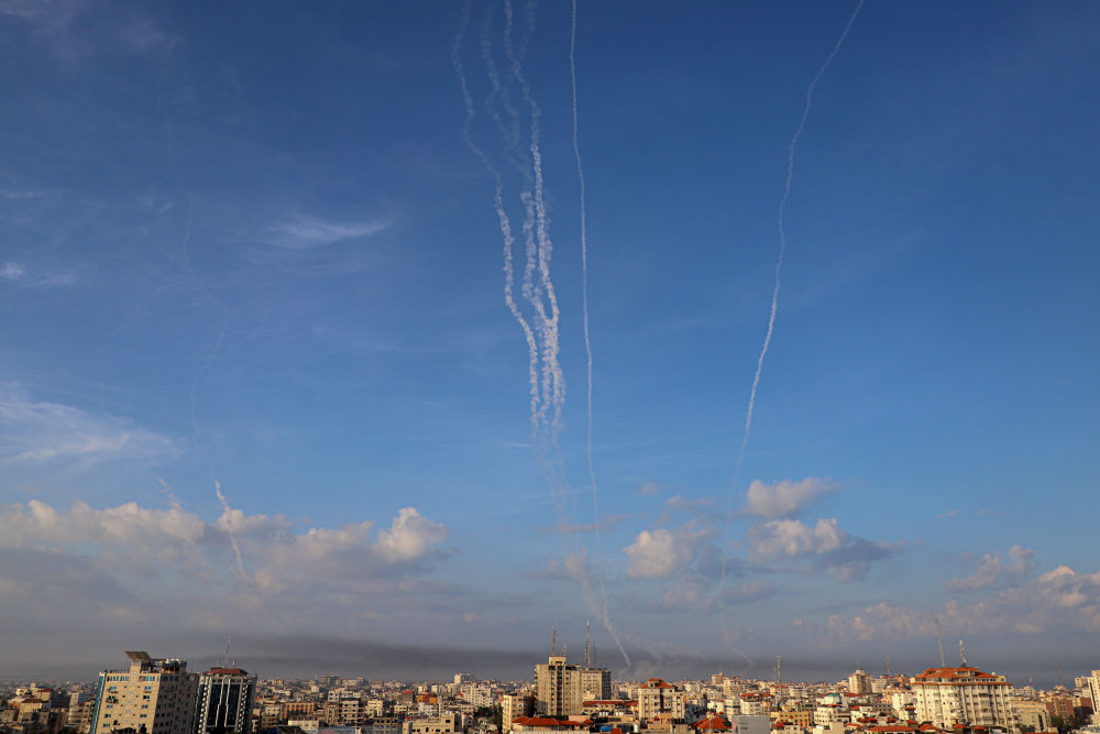 ↑这是10月7日在加沙城拍摄的向以色列发射的火箭弹。新华社发(里泽克·阿卜杜勒贾瓦德摄)