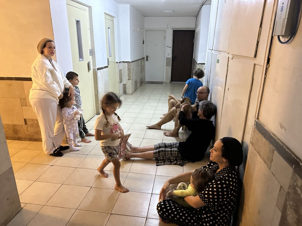 ↑10月7日,防空警报响起后民众在耶路撒冷一处建筑内避难。新华社记者 王卓伦 摄