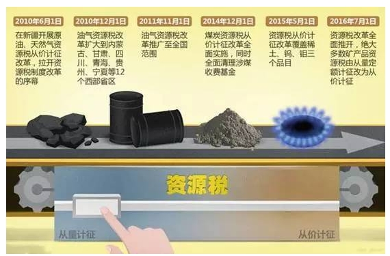 5月10日,财政部、国家税务总局发布《关于全面推进资源税改革的通知》,宣布自7月1日起,全面推进资源税改革,资源税改革总体上不增加企业税费负担,改革后大部分企业的负担有所降低。此次改革按照税费平移的基本原则,兼顾企业经营的实际情况和承受能力,合理确定了资源税计税依据和税率水平。