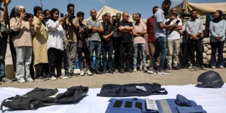 巴勒斯坦记者抗议以军空袭致5名记者遇难