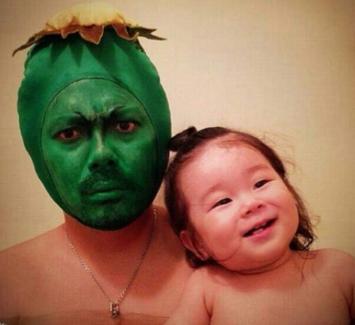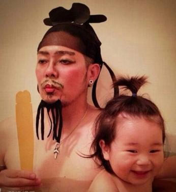 日本逗比父女泡澡照走红 化身李白僵尸上演百变造型