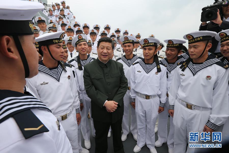 2012年12月8日,中共中央总书记、中共中央军委主席习近平在广州战区考察。这是习近平在“海口”舰上视察时,与水兵亲切交谈。
