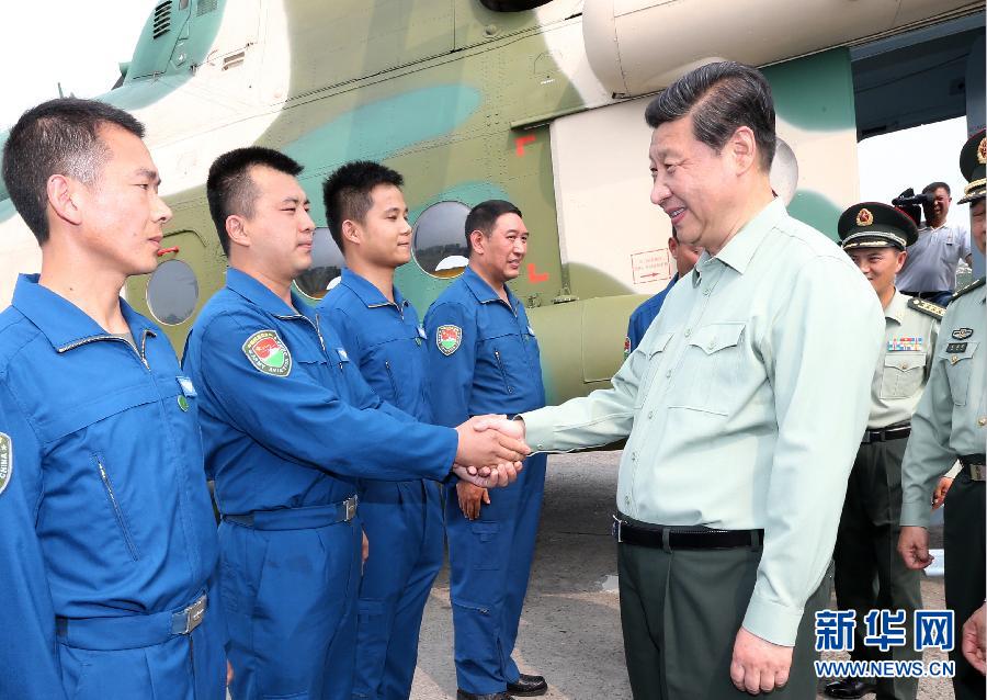2013年5月22日下午,中共中央总书记、国家主席、中央军委主席习近平到第13集团军某陆航旅视察。这是习近平得知直升机飞行员张尚年中断婚礼赶赴灾区抢险救灾后,叮嘱他抓紧把婚礼办了。