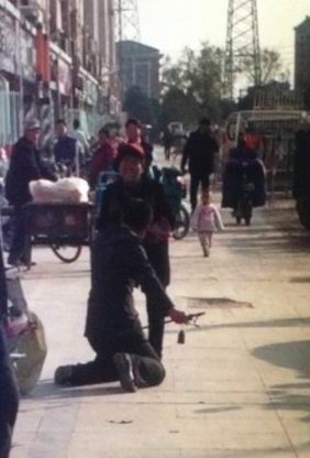扬子晚报11月23日讯(记者 高峰)为了劝阻占道经营的老太离开,城管在劝了多次后,作势拿走老太的称重秤,老太一看跪了下来要求还秤,城管一见,也跪了下来,恳求老太离开。昨天上午,宿迁市民向记者提供了这样的一段城管执法时向老太下跪的视频,当事城管所在单位证实,确有此事。