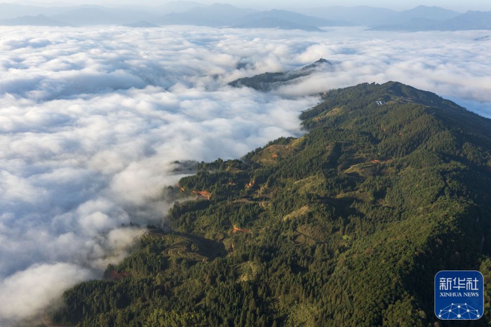 ↑11月17日拍摄的贵州省从江县高增乡新生村云海景观(无人机照片)。新华社发(吴德军摄)