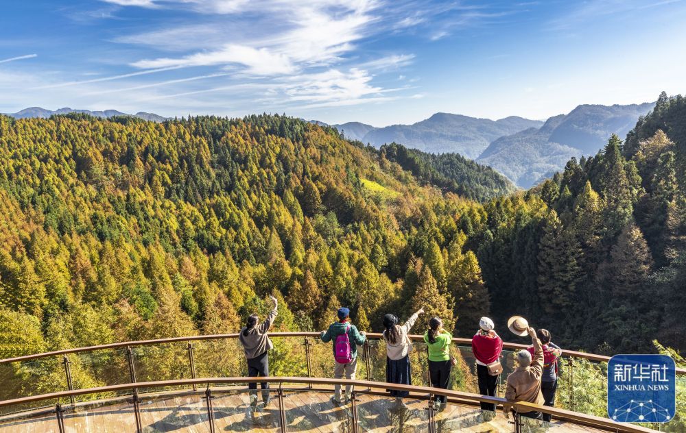 ↑11月17日,游客在重庆市南川区山王坪喀斯特生态公园欣赏美景。新华社发(瞿明斌摄)