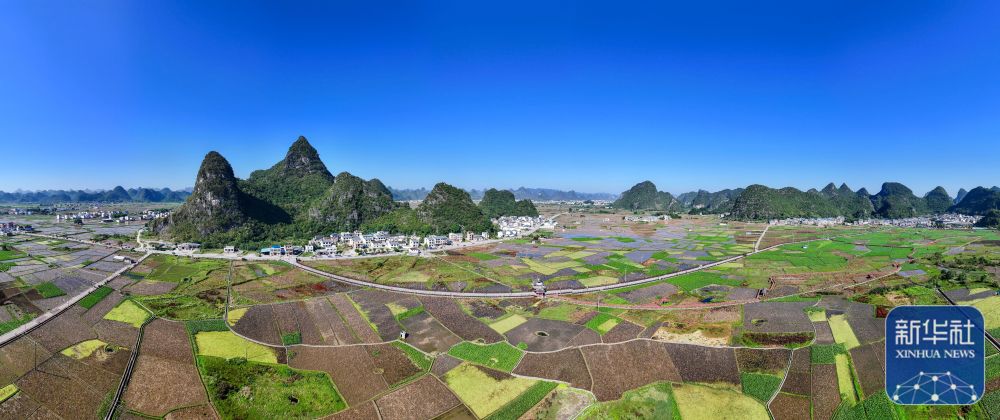↑11月17日在广西柳州市柳江区百朋镇拍摄的怀洪村景色(无人机全景照片)。新华社发(喻湘泉摄)