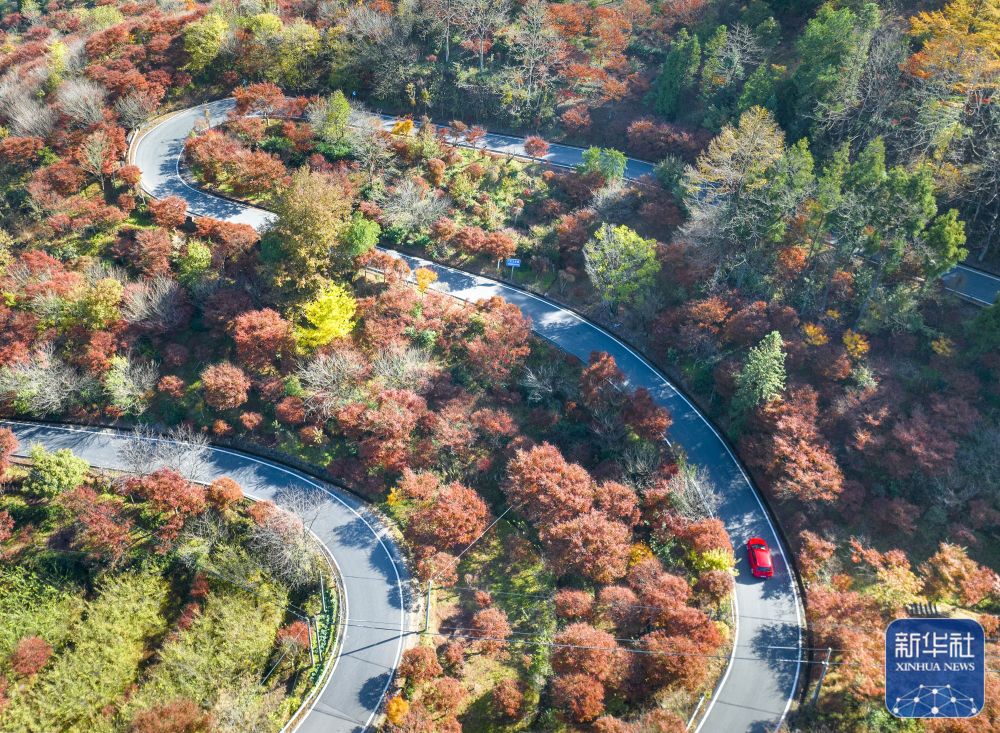 ↑11月17日拍摄的浙江省余姚市四明山镇梨洲村乡村道路(无人机照片)。新华社发(胡学军摄)