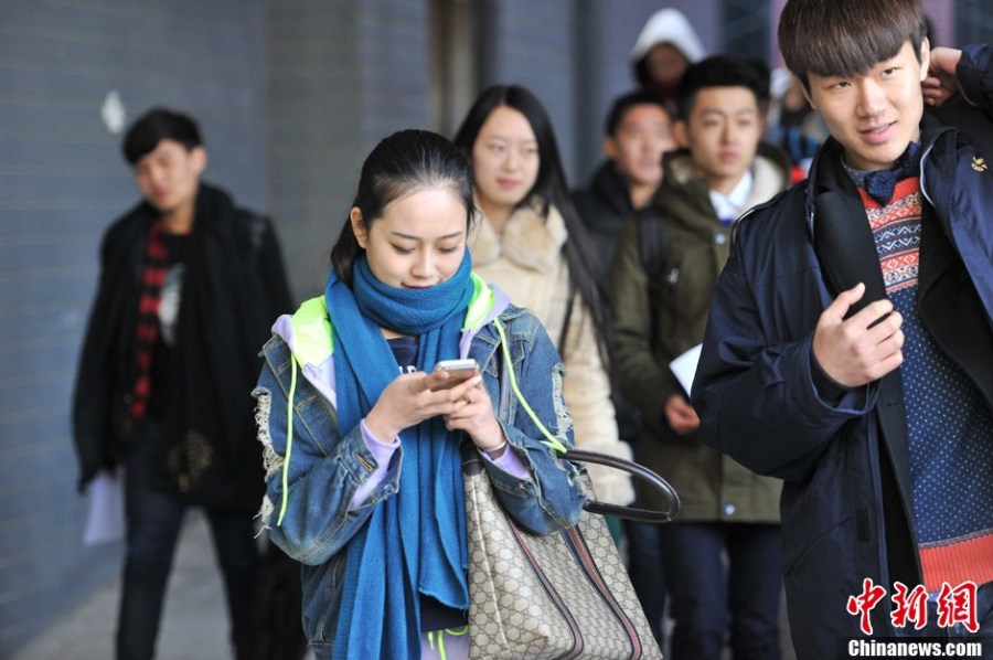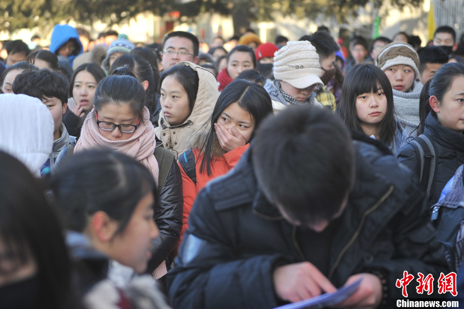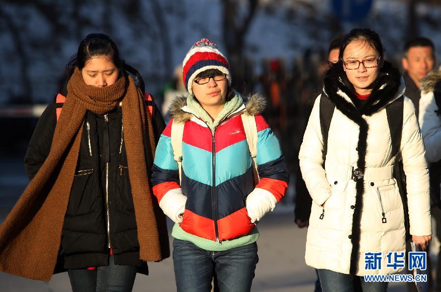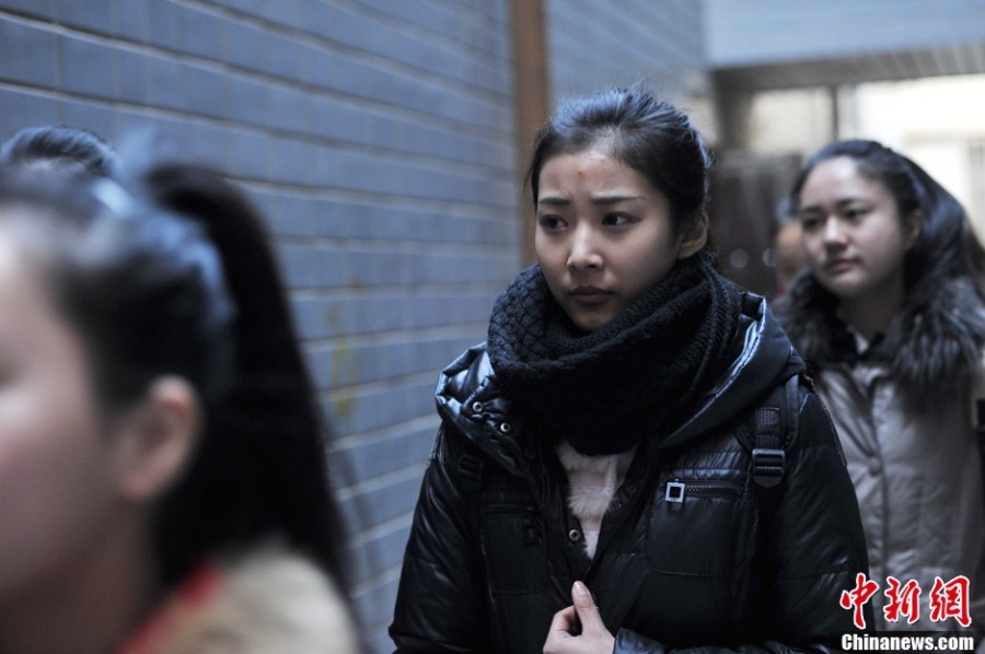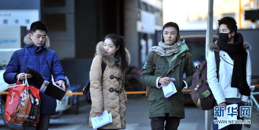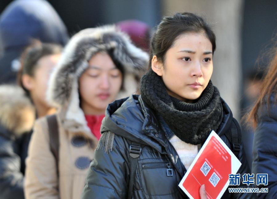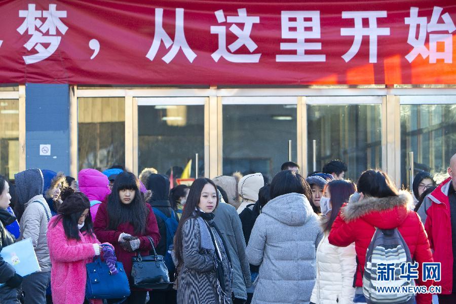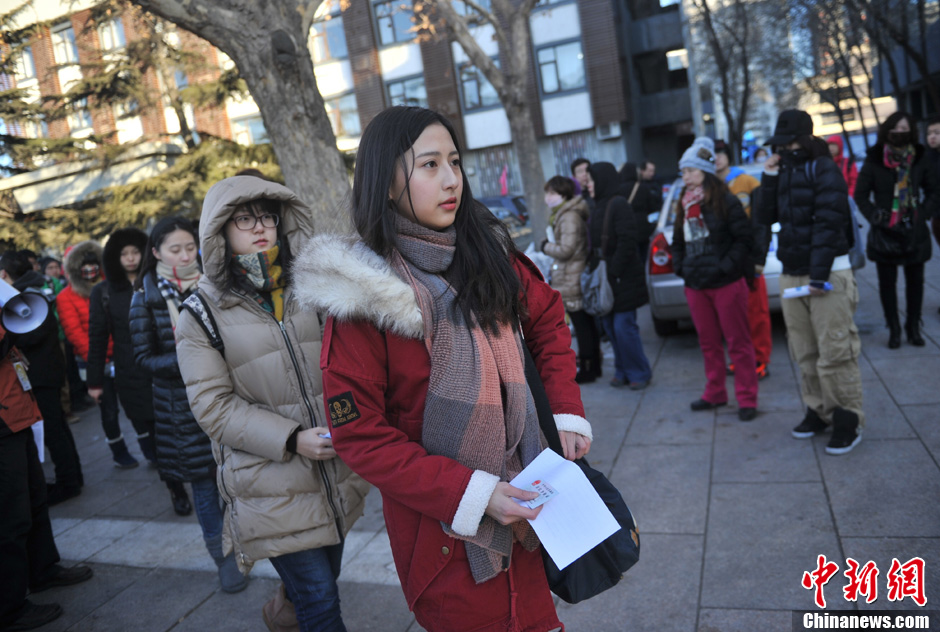 2月9日拍摄的前来参加北京电影学院艺术类招生考试的考生们。当日,北京电影学院2014年艺术类招生考试正式开考。据了解,今年北京电影学院10个艺术类本科专业共计划招生513名,与去年持平。在各招考专业中,表演依旧为热门专业,报考人数比去年增加10%。新华社发(赵冰摄)