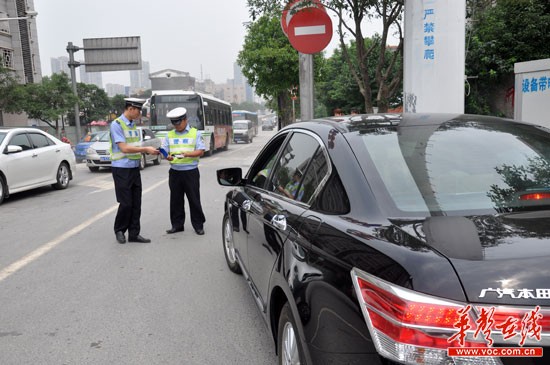 “各大路口处都已悬挂交通标识,但每天仍有不少车主对标识牌视而不见,在路上逆向行驶,这种做法造成了很大的交通安全隐患。”正在路上执勤的长沙市开福区四中队民警表示。
