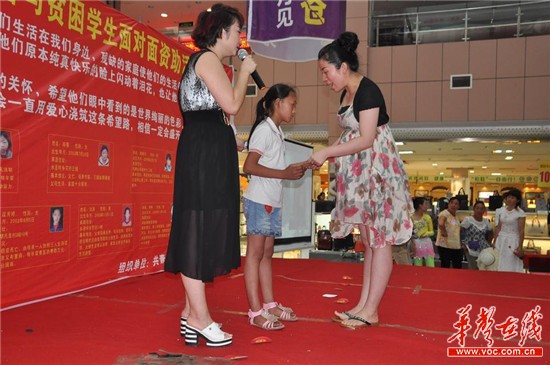 图3:主持人现场介绍此次接受资助的贫困学生代表