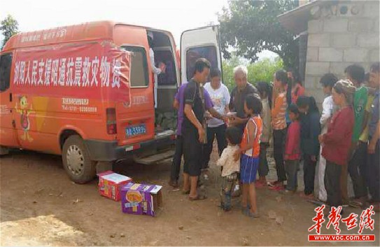 华声在线8月12日讯(记者 邹园)4000多份高热量的熟食随着2辆“抗震救灾运输车”,7日6时下午2时从湖南长沙出发,经湖南常德、贵州铜仁、遵义、毕节,7日上午抵达云南鲁甸县城,然后转向震中龙头山镇的光明村,历时近18个小时长达1000多公里的跋涉,终于到达灾民的手中。