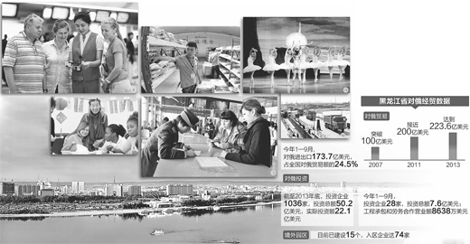 黑龙江省商务厅提供的数据显示,截至2013年末,黑龙江省累计核准对俄投资企业1036家,投资总额50.2亿美元,实际投资额22.1亿美元,占全国1/5强。今年1—9月,黑龙江省核准对俄投资企业28家,投资总额7.6亿美元。